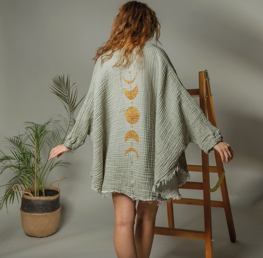 MUSLIN KIMONO PONCHO W/ MOON PHASES